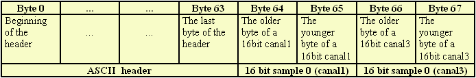 Immediately after the end of the 64 byte ASCII header start sampled data: |